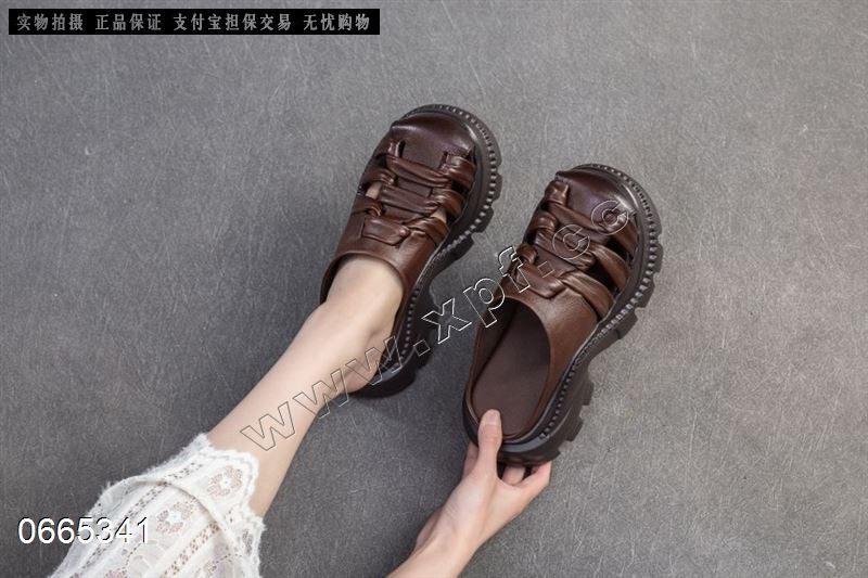 厚底复古拼色百搭编织休闲舒适拖鞋25568