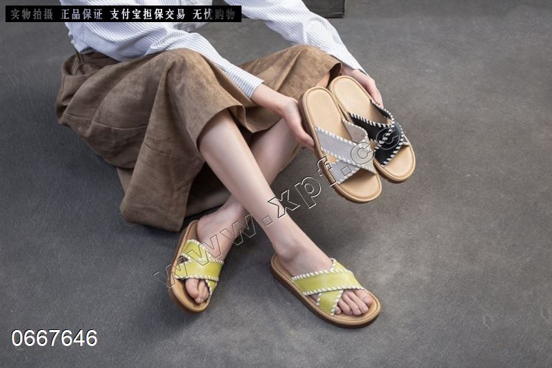 休闲头层牛皮复古交叉百搭凉拖211