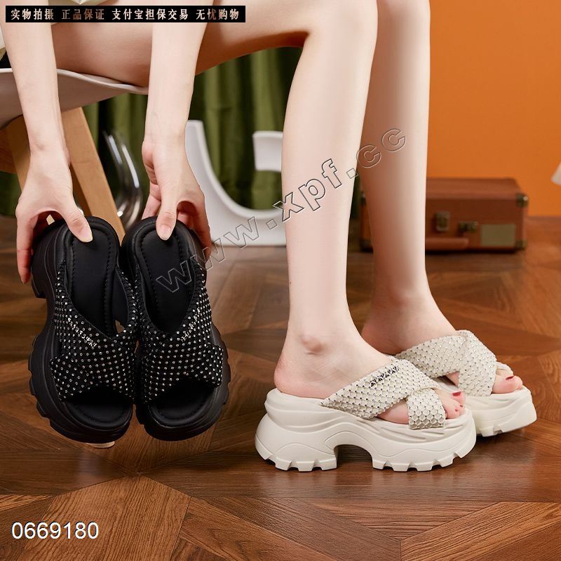 新款厚底亮片时尚外穿一字凉拖鞋百搭不累脚拖鞋Z9270