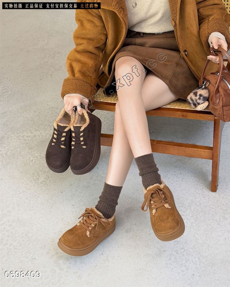 新款厚底深色系磨砂皮绒里板鞋