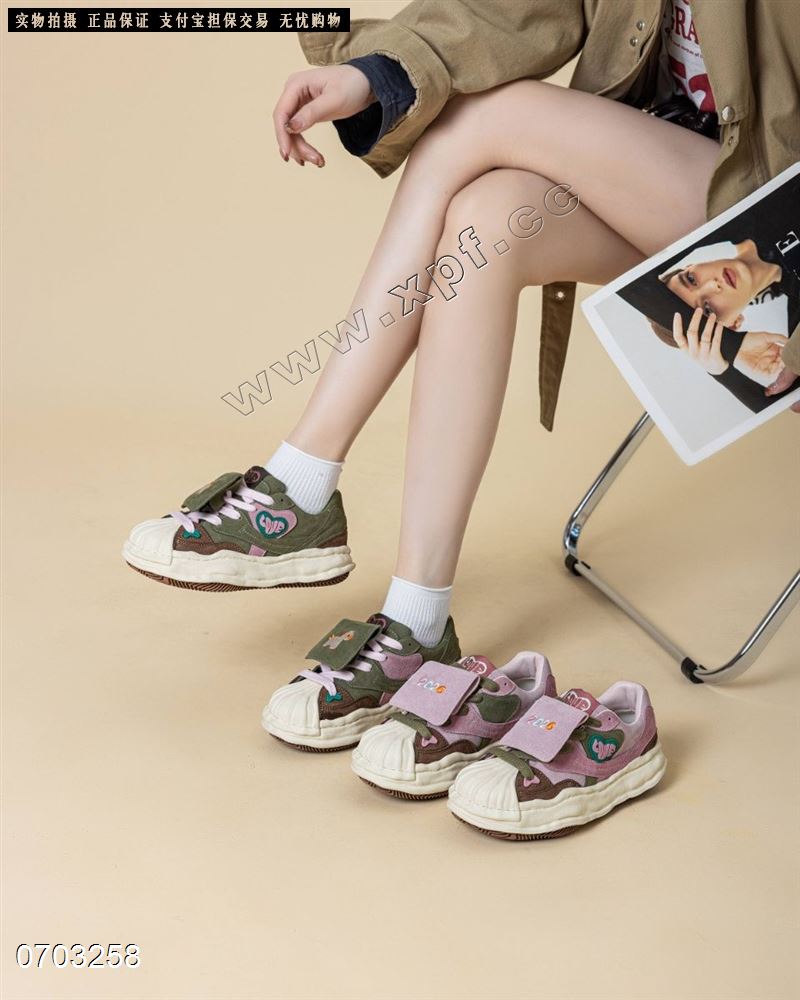 新款厚底贴皮休闲鞋小胖丁面包板鞋
