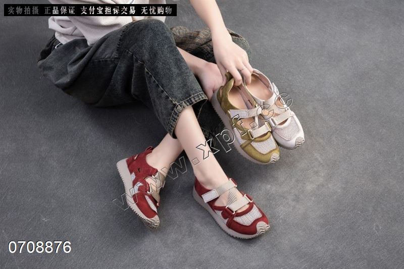 平底圆头撞色擦色休闲女鞋网面2F88